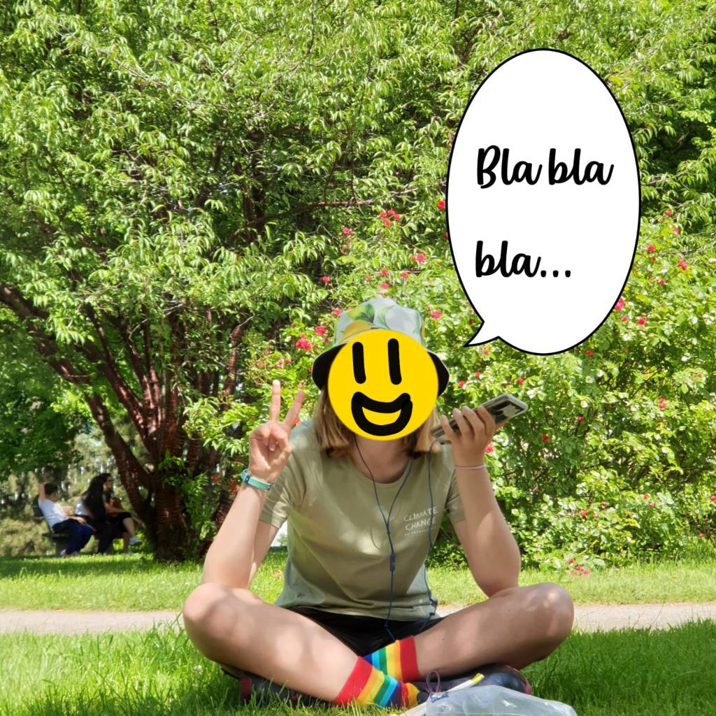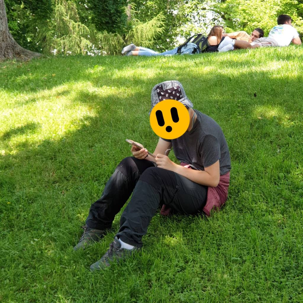 Nous avions choisi un petit coin tranquille et isolé dans le parc, mais des enfants sont venus s’installer juste à côté de nous et ont commencé à chanter (plutôt bien mais très très fort ! ).