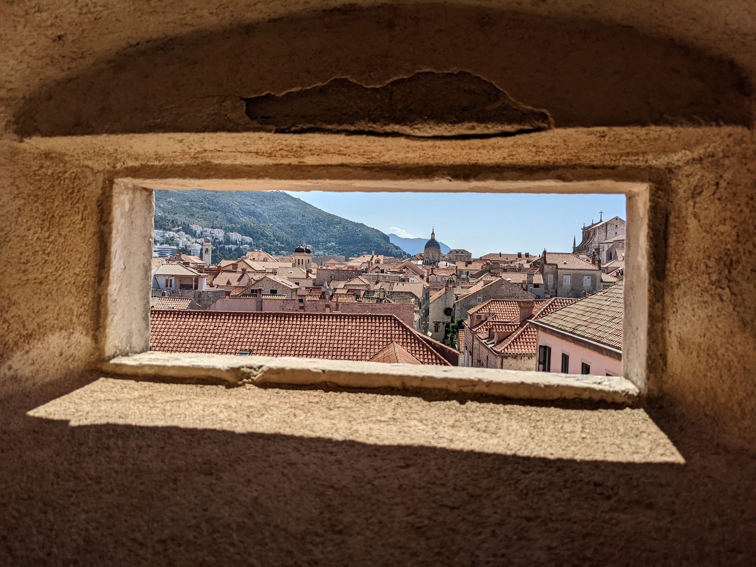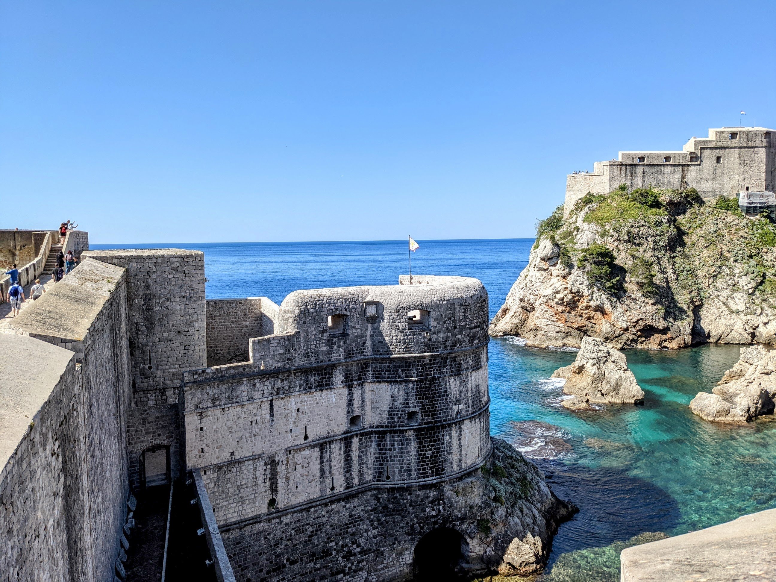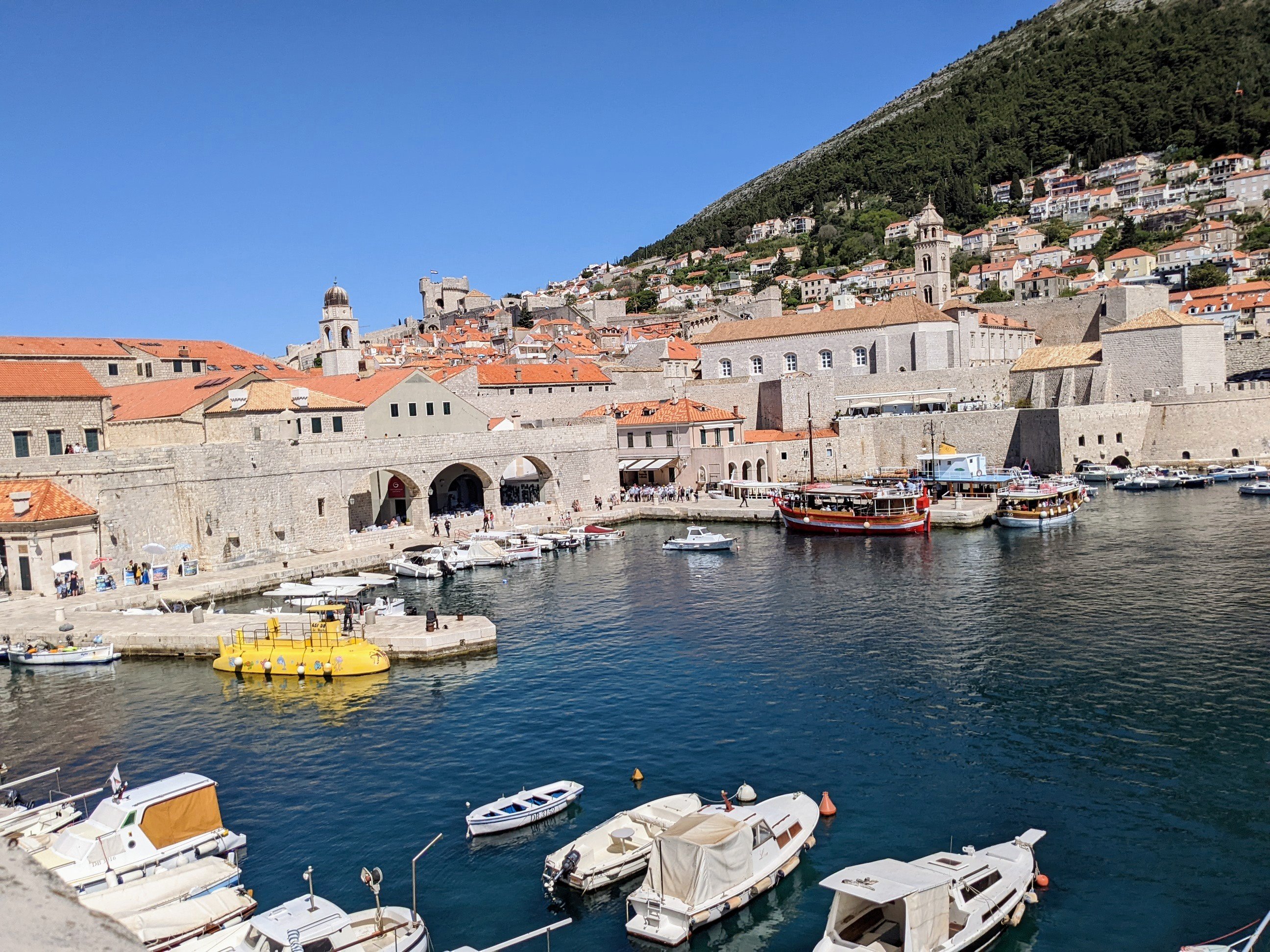C’est en bateau que nous sommes arrivés, en provenance de l’île de Mljet, profitant d’une très belle vue sur la vieille ville, nichée entre la falaise et la mer.
