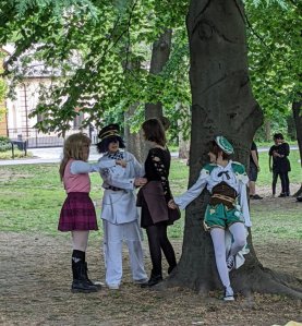 Nous avons fait une petite pause sur les pelouses de l’île Marguerite, qui se trouve sur le Danube, entre Buda et Pest. Il y a sur cette île un joli parc avec une fontaine musicale et des cafés. Il y avait justement cet après-midi là un rassemblement Cosplay dans le parc: ambiance pop culture pour des dizaines de jeunes déguisés avec perruques, costumes et accessoires. Emma était ravie d’y retrouver ses personnages de mangas préférés !