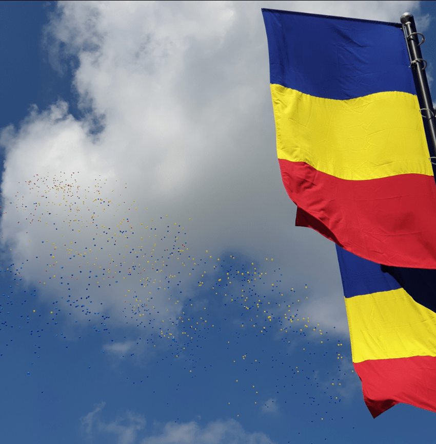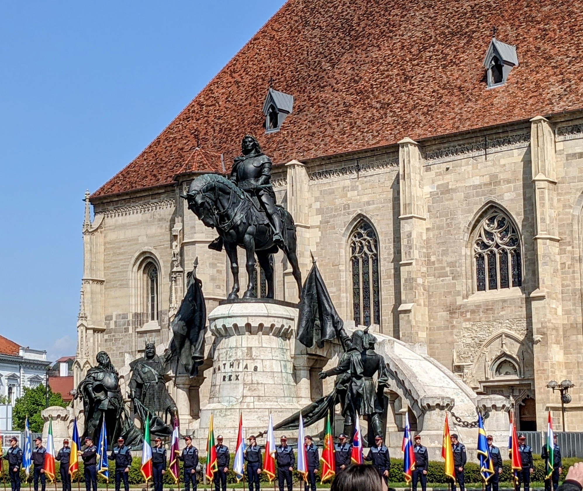 Le 10 mai nous avons pu assister aux cérémonies de la fête de l’indépendance de la Roumanie et fête de l’Europe avec une parade militaire, une chorale, une fanfare et un lancer de ballons sur la Piața Unirii.