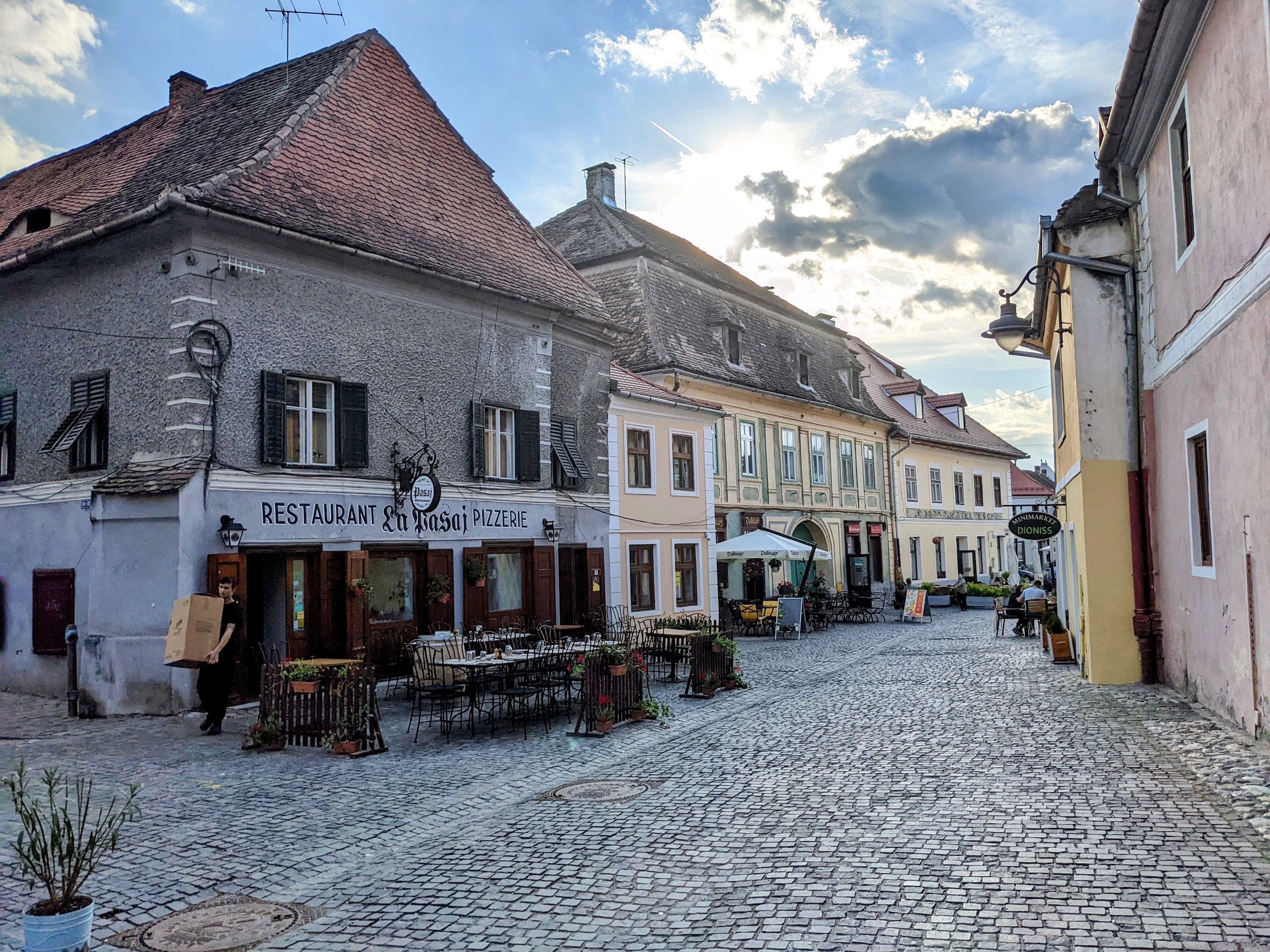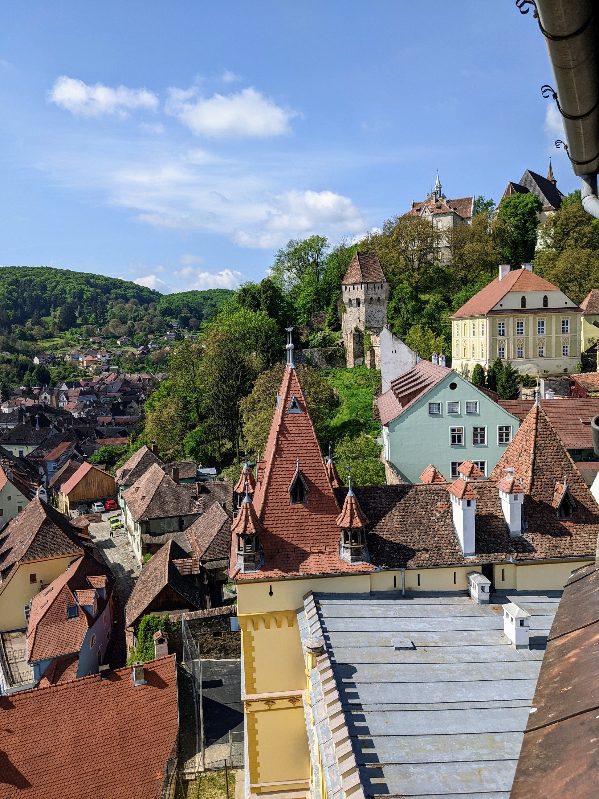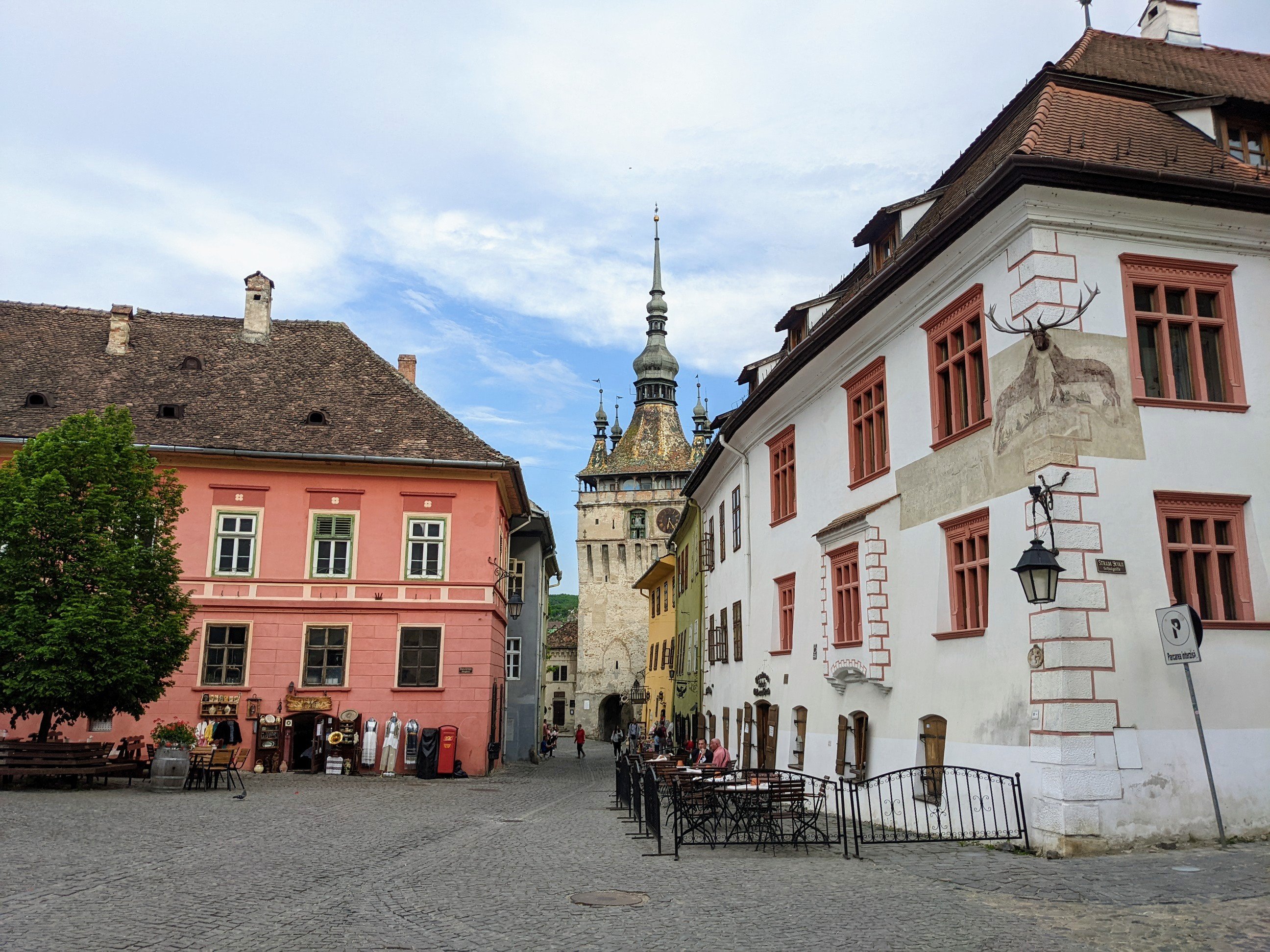 Nous avons visité Sighișoara sous un temps chaud et orageux et nous avons trouvé que la ville semblait figée dans le temps et dégageait une ambiance un peu mystérieuse et féodale. C’est d’ailleurs ici que se tient chaque été un festival médiéval (Sighișoara Medievală) avec combats d’épées, artisans et troubadours; le décor s’y prête à merveille !
