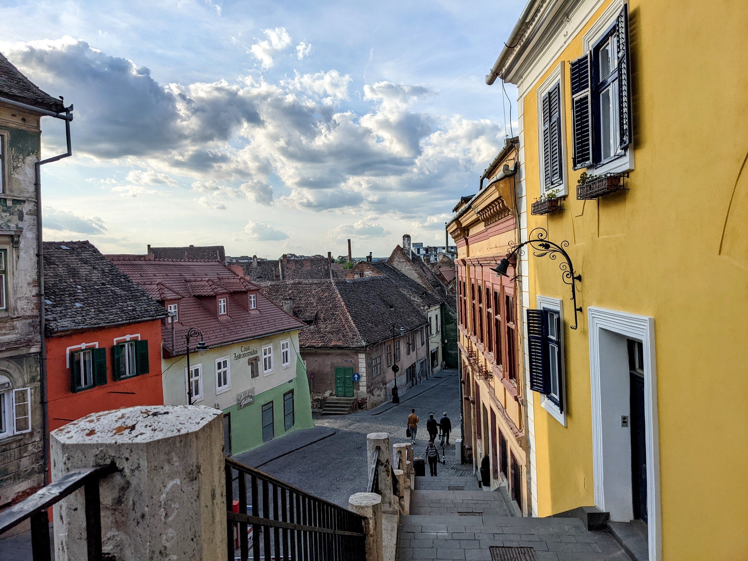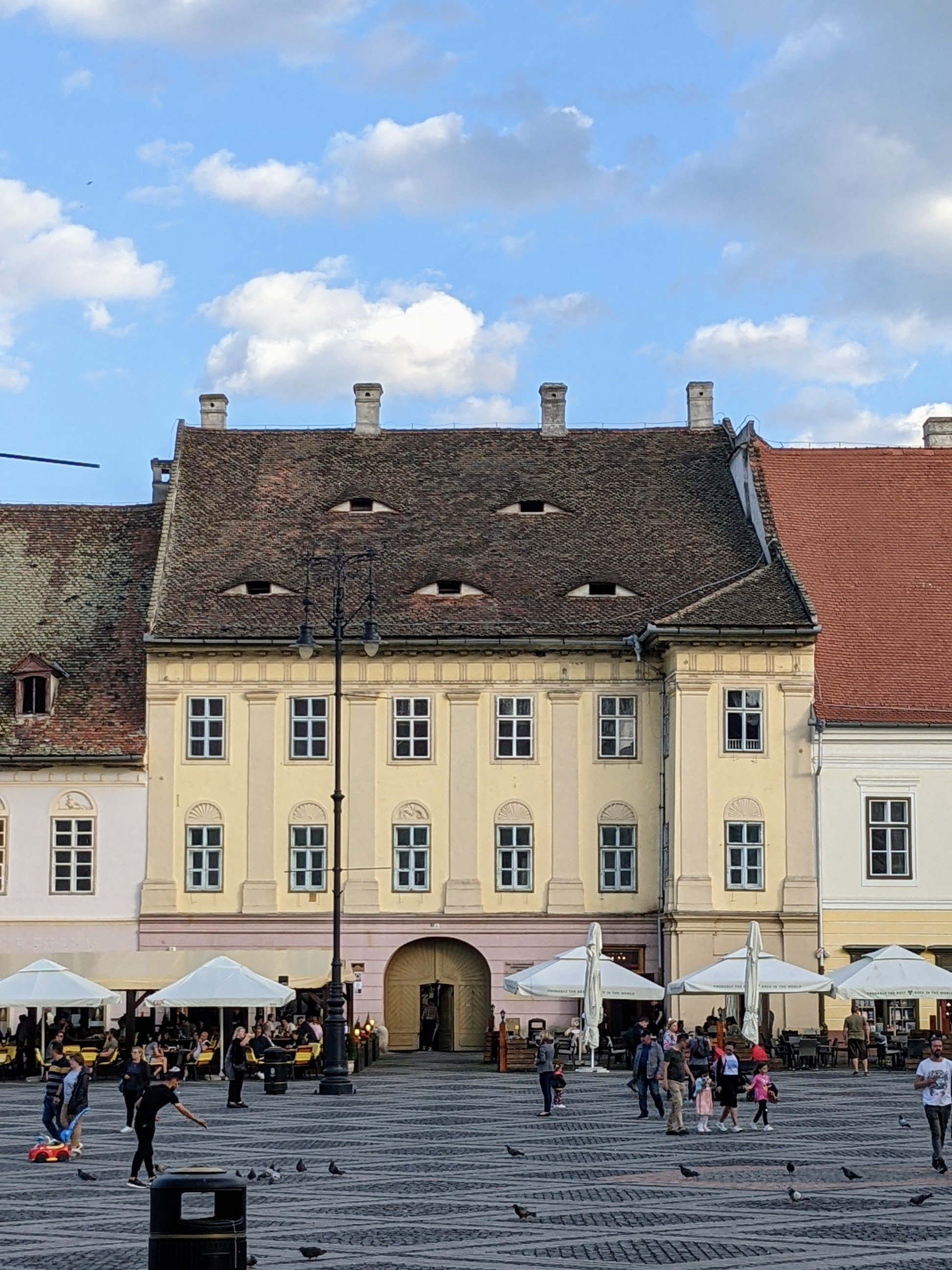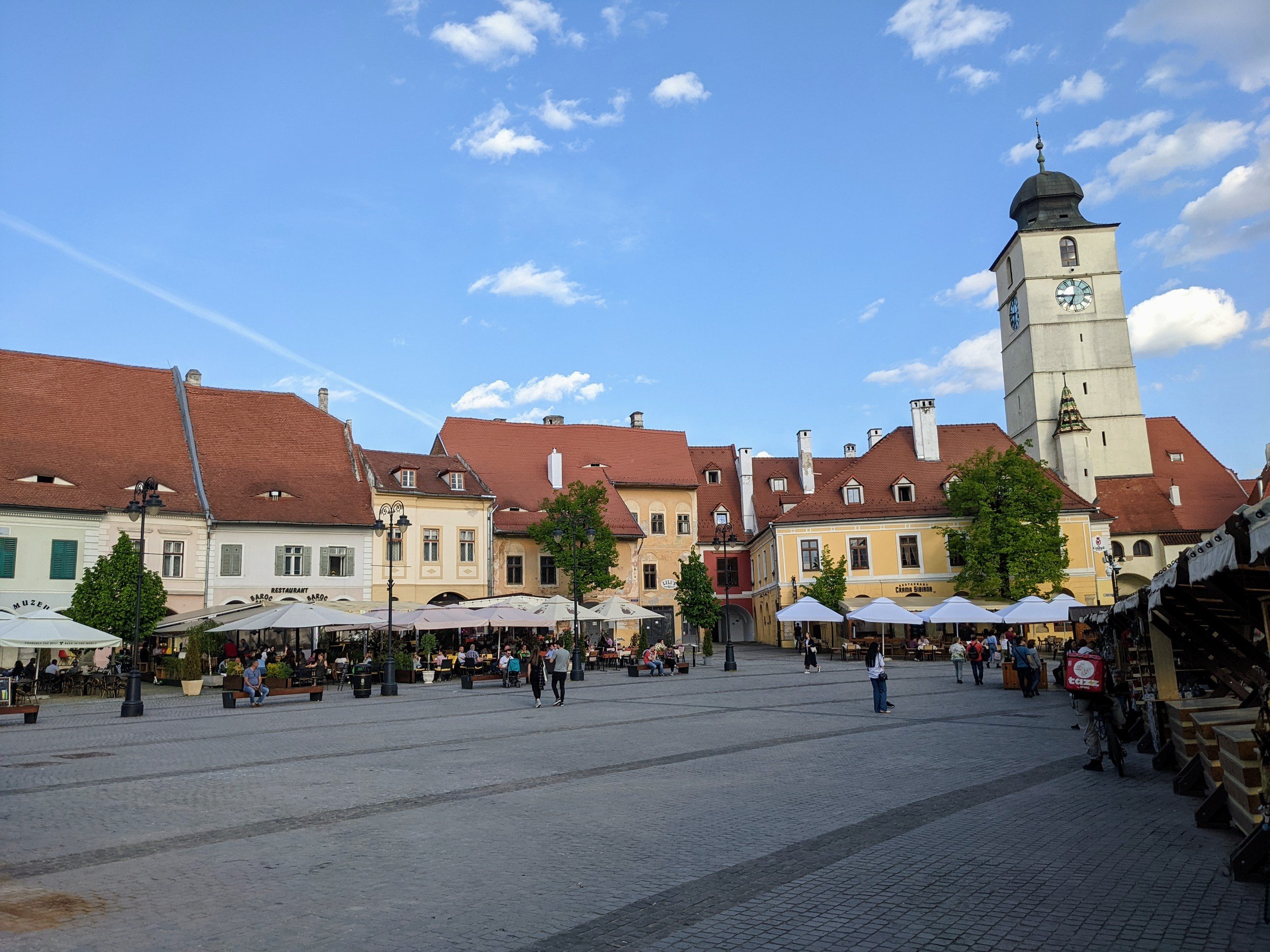 Sibiu est une jolie ville fortifiée très bien préservée, avec des décors de conte de fée aux couleurs pastel. La grande place est particulièrement belle avec toutes ses façades colorées. Les toits des maisons sont percés de petites lucarnes avec des fenêtres qui donnent l’impression amusante que des yeux un peu somnolents vous observent.