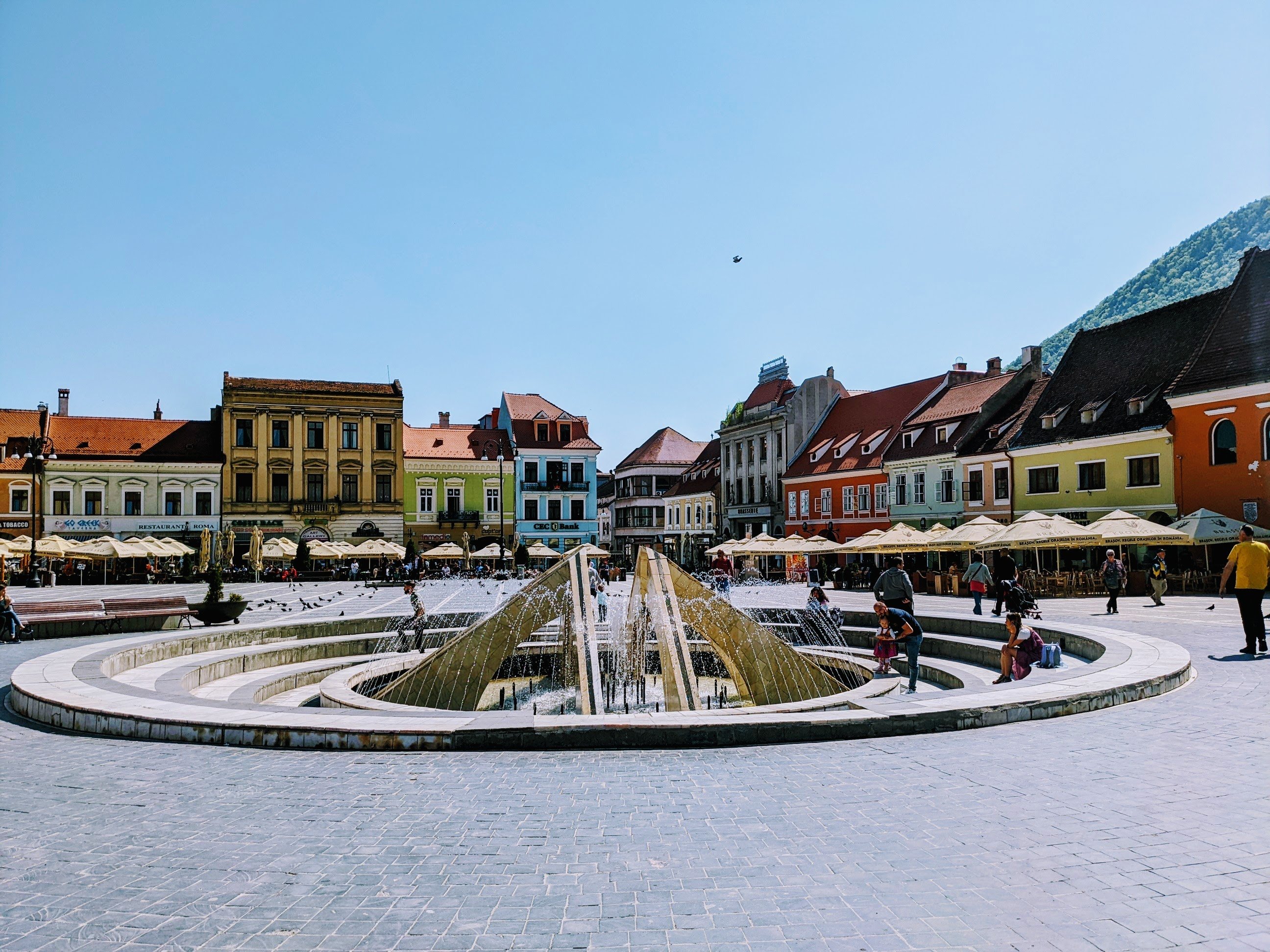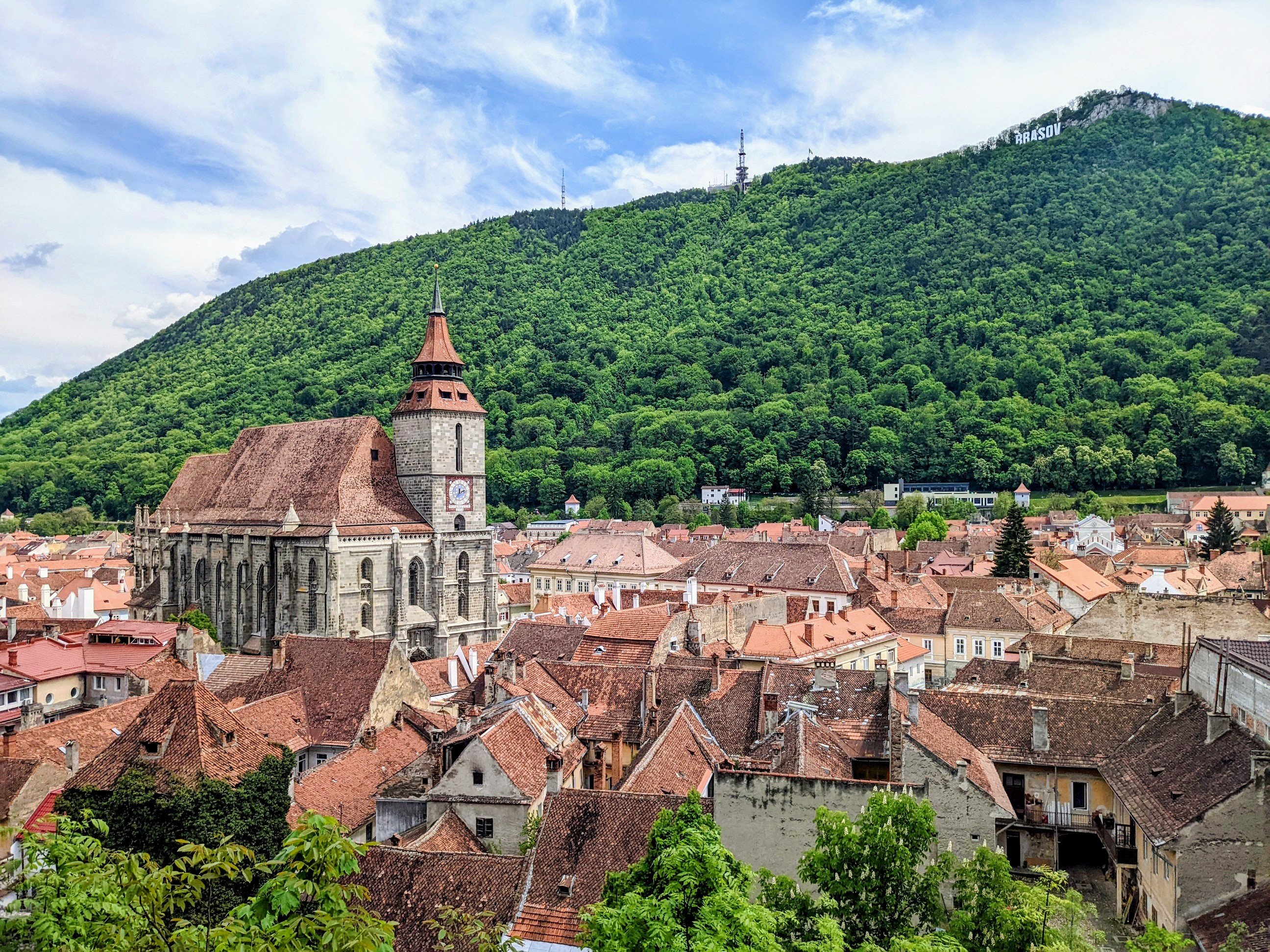 Brasov est une ville bordée par les montagnes des Carpates. Le centre historique est agréable et très animé, avec de nombreuses terrasses et restaurants et de beaux bâtiments colorés, qui contrastent avec l’architecture grise de l’époque communiste dans le reste de la ville.