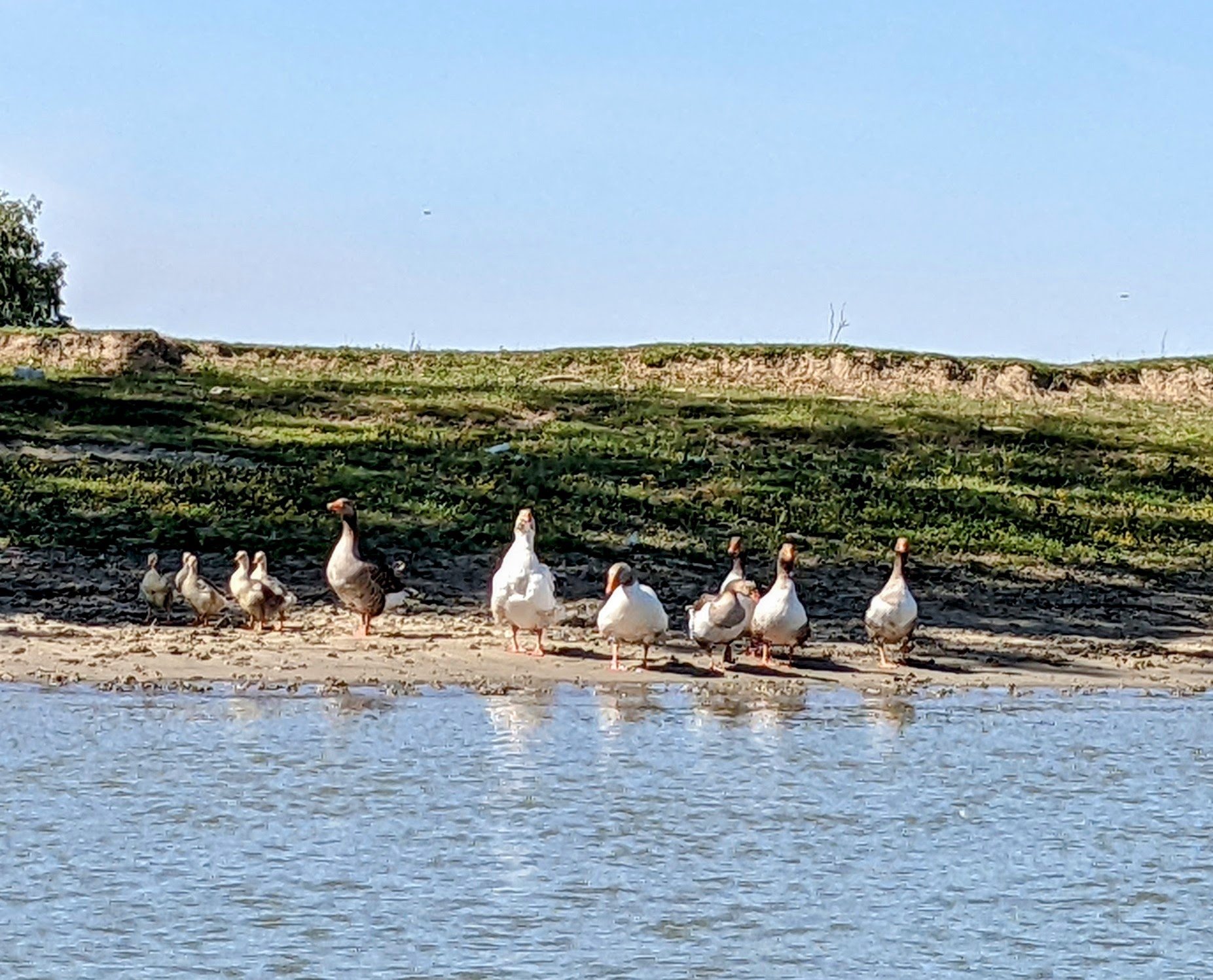 Nous partons donc avec notre guide Victor sur son petit canot à moteur pour une excursion au milieu des roseaux et des nénuphars. Victor, avec ses yeux de lynx et sa paire de jumelles, a le chic pour repérer les oiseaux et les nids pourtant bien cachés. Il connaît tous leurs noms en russe, roumain et en anglais ! Il nous montre un martin-pêcheur, des sternes, des pélicans, des cigognes, des hérons, des aigrettes, des cygnes, un aigle, des cormorans, des mouettes, des canards, des oies, un serpent, des grenouilles, des chevaux sauvages, des vaches qui nagent, un chacal doré, des poissons, des libellules…sans compter ceux qu’on entend mais qu’on ne voit pas (le coucou !)… Bon, il va falloir nous croire, car toutes ces petites bêtes étant timides et rapides comme l’éclair, on ne les a pas toutes en photos !