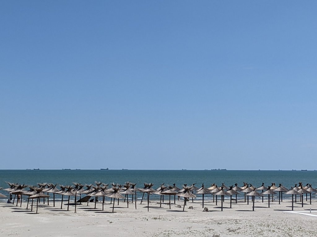 Nous arrivons à la plage de Sulina, nous nous installons à l’ombre d’un parasol pour faire notre pique nique.