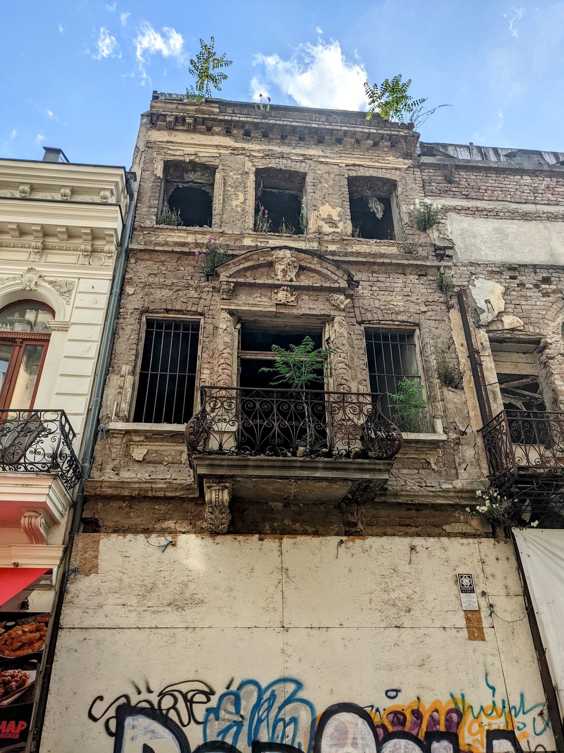 Bucarest est une ville éclectique et pleine de contrastes, un mélange d’ancien et de moderne, où les palais luxueux côtoient les immeubles en ruines, où les gigantesques panneaux publicitaires trônent sur les bâtiments communistes, où les petites églises sont coincées entre deux bâtisses bétonnées et où les parcs sont cachés derrière de grandes avenues bruyantes ! C’est surtout un immense chantier, il y a des travaux partout et beaucoup d’immeubles délabrés … Tous ces bâtiments en ruine, c’est un peu tristounet quand même ! La ville a cependant plein de trésors cachés, mais il faut bien chercher !