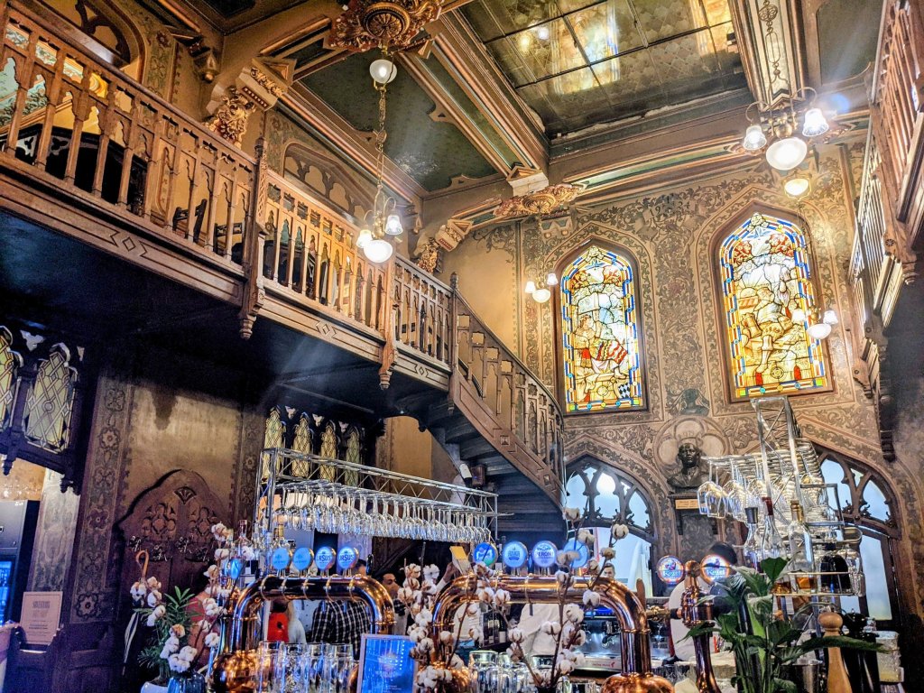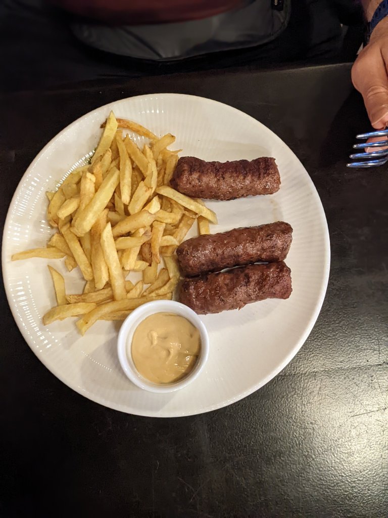 La météo étant capricieuse, nous nous sommes réconfortés en goûtant à la cuisine roumaine dans un des plus anciens restaurants de la ville: le Caru’ Cu Bere qui est un très bel édifice, aux décors magnifiques et à l’ambiance chaleureuse. Les Roumains plaisantent en disant que le meilleur légume roumain, c’est le porc ! Effectivement, les menus sont rarement végétariens ! Nous avons goûté à la ciorba de fasole (soupe de haricots blancs servie dans du pain) et aux mititei (saucisses grillées). Nous avons même profité d’un chouette concert dans le restaurant !