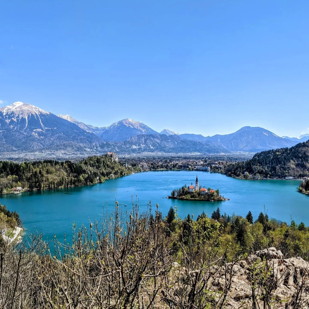 Nous avons fait le tour du lac, un picnic face à l’îlot, et nous sommes montés sur le sentier Ojstrica (ça grimpe) pour admirer le paysage depuis la colline et prendre de jolies photos!