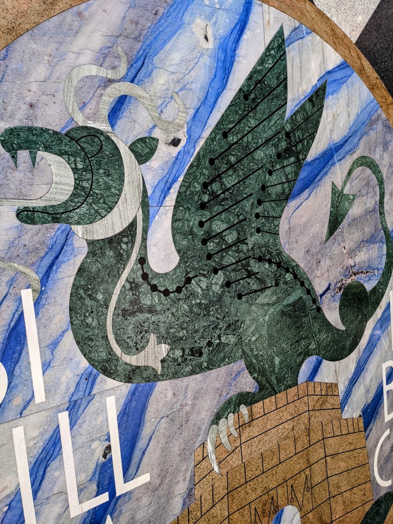 Le dragon de Ljubljana, sur le sol du hall de la gare