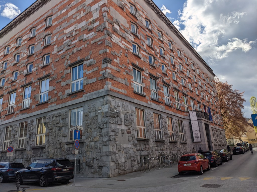 Le triple pont Tromostovje, vu depuis la place PrešerenLa bibliothèque universitaire