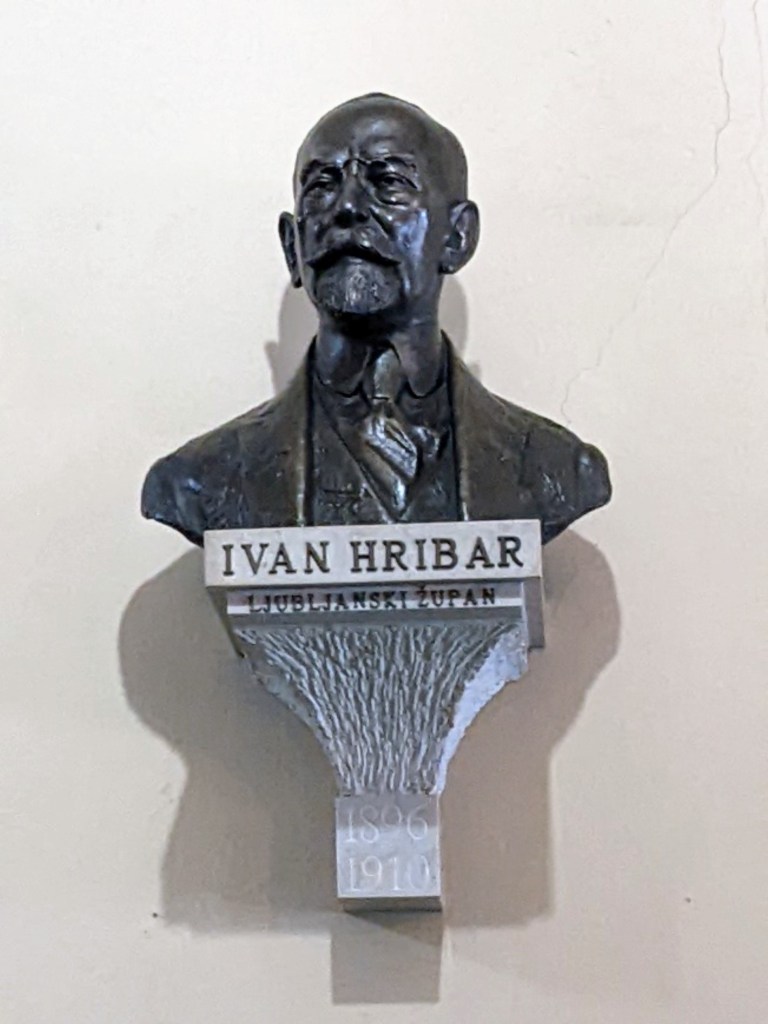 Ivan Hribar fut maire de Ljubljana au début du XXė siècle et il dirigea la reconstruction et la modernisation de la ville dans le style Art Nouveau, après le tremblement de terre de 1895. En 1941, alors qu’il était âgé de 90 ans, il se suicida en se jetant dans la rivière Ljubljanica, enveloppé dans le drapeau yougoslave, pour protester contre l’annexion de la ville par l’Italie fasciste.